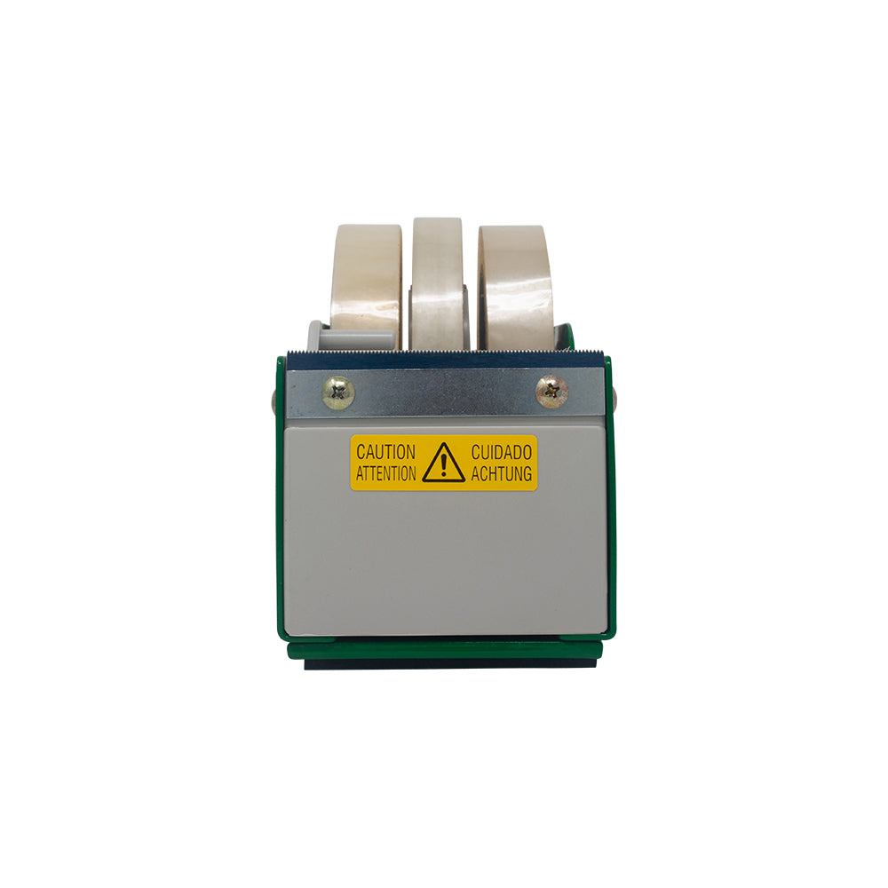 3 inch wide multi-roll dispenser with split mandrel can handle 1 roll of tape up to 3 inch wide, 3 rolls of tape up to 1 inch wide each, or a combination of other sizes that do not exceed 3 inch total width. Separators for easy tape removal and heavy duty construction of steel and hi-impact plastic makes this weighted base dispenser perfect for many applications including office, shipping room, assembly, retail, institutional, and industrial.