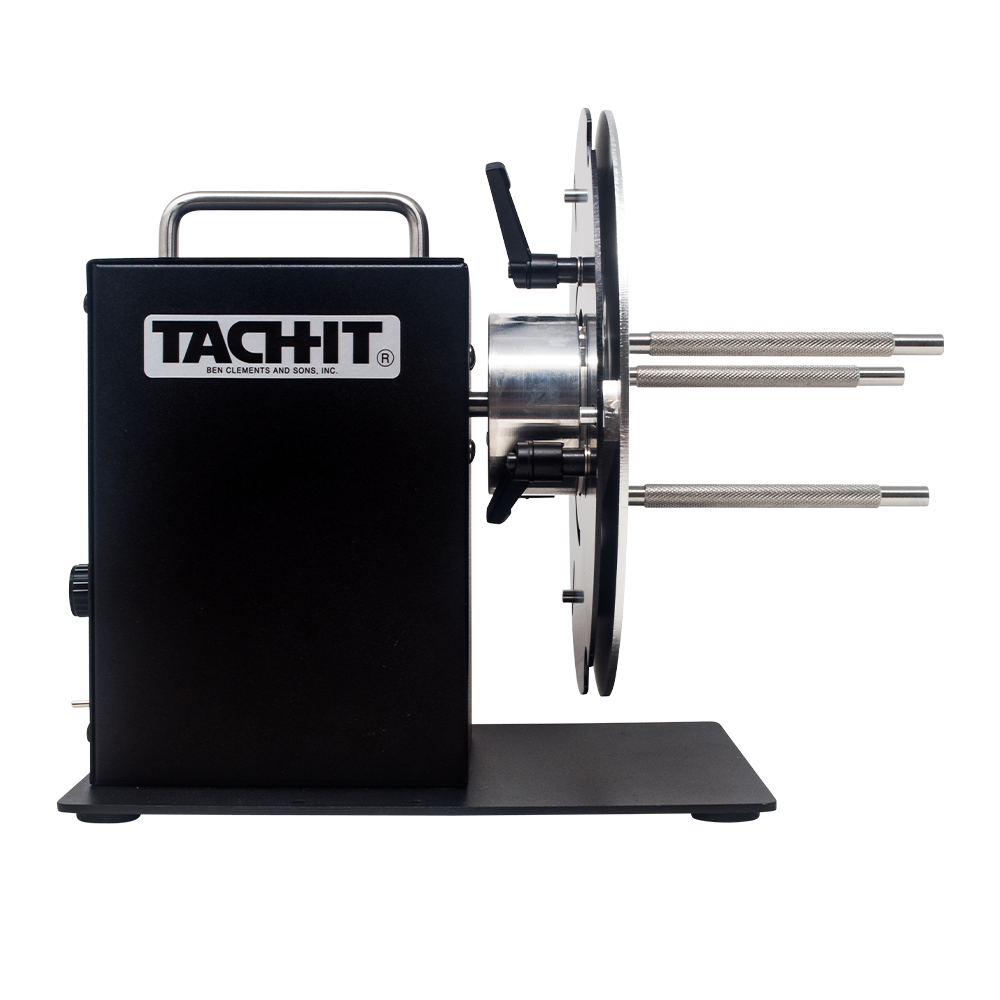 Tach-It's Model LR500 Label Rewinder has a very unique feature which allows the operator to easily change the core sizes. While a 3 inch core is industry standard in most markets, some hand-held and specialized machinery requires different core sizes for their labels to work properly on their equipment. This is where our LR500 has become very popular. Easy to adjust for a 1 inch core to a 4 inch, the LR500 does not require any special training or tools to make this changeover. Bi-directional, the LR500 is able to either rewind or unwind labels at a speed of up to 12 inches per second. Perfect anywhere either fan-fold or computer generated labels are used, the LR500 has been found to have large market need in the following industries including; pharmaceutical and medical packaging, retail, manufacturing, industrial, food service and anywhere labels need to be rewound onto a roll. Designed for 24.7.365 operation the LR500 has a slip clutch for consistent winding tension without breaking of the liner and a compact table top design.